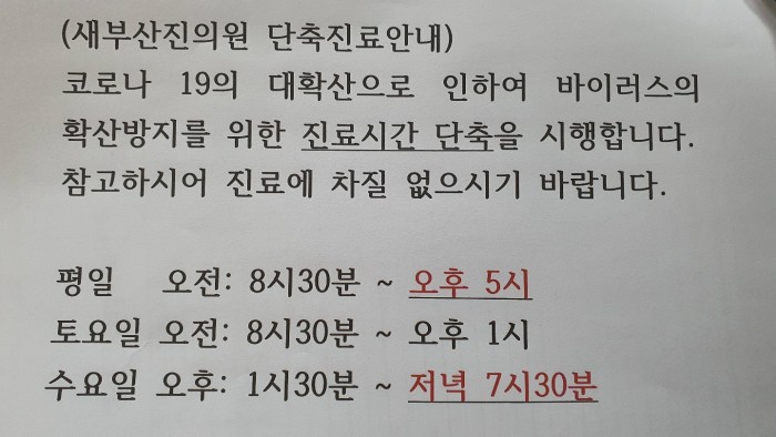 진료시간 단축안내